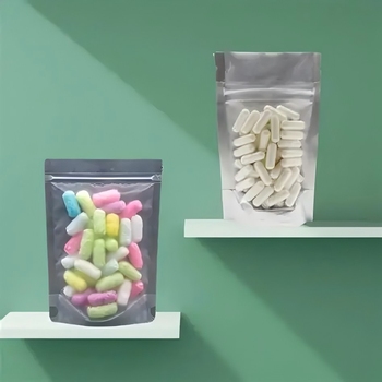 Made in China Custom Stand up Cรกpsula Embalagem Bolsas Auto Selagem Mylar Pouch com Janela para Embalagem Cรกpsulas
